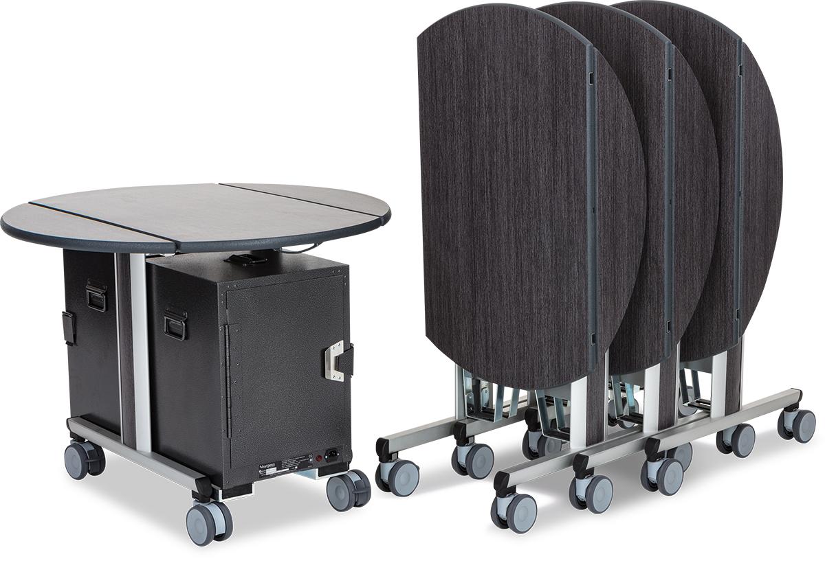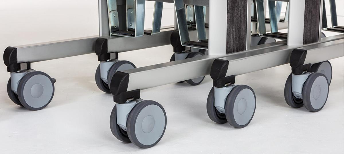 When not in use, the table top rotates smoothly to a vertical position, allowing multiple units to nest together. This clever feature saves precious back-of-house space, allowing you to store more trolleys in a smaller space, keeping your service areas organised and efficient.