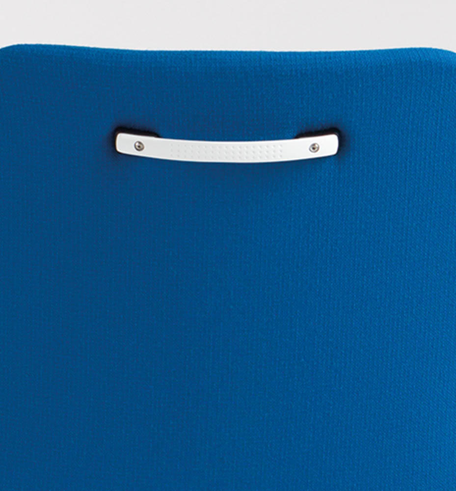 The back handle is a rectangular bar handle attached to the back of the chair, to aid in moving or lifting chairs. Finished in brushed silver, it adds elegant detailing to the back of the chair.